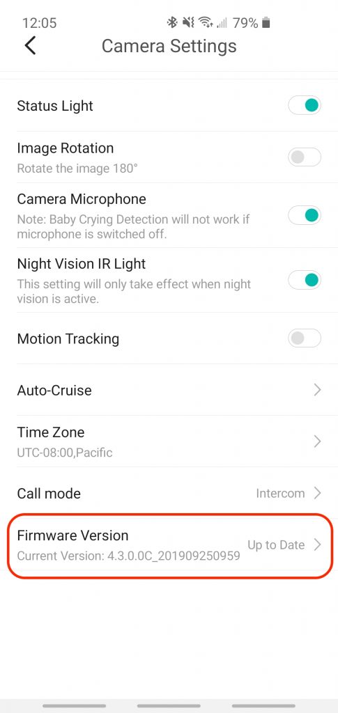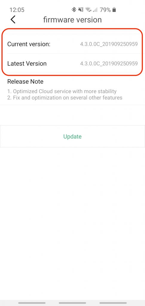 3. The firmware version is on the bottom. If the current firmware is up to date, the status will say ‘Up to Date’.